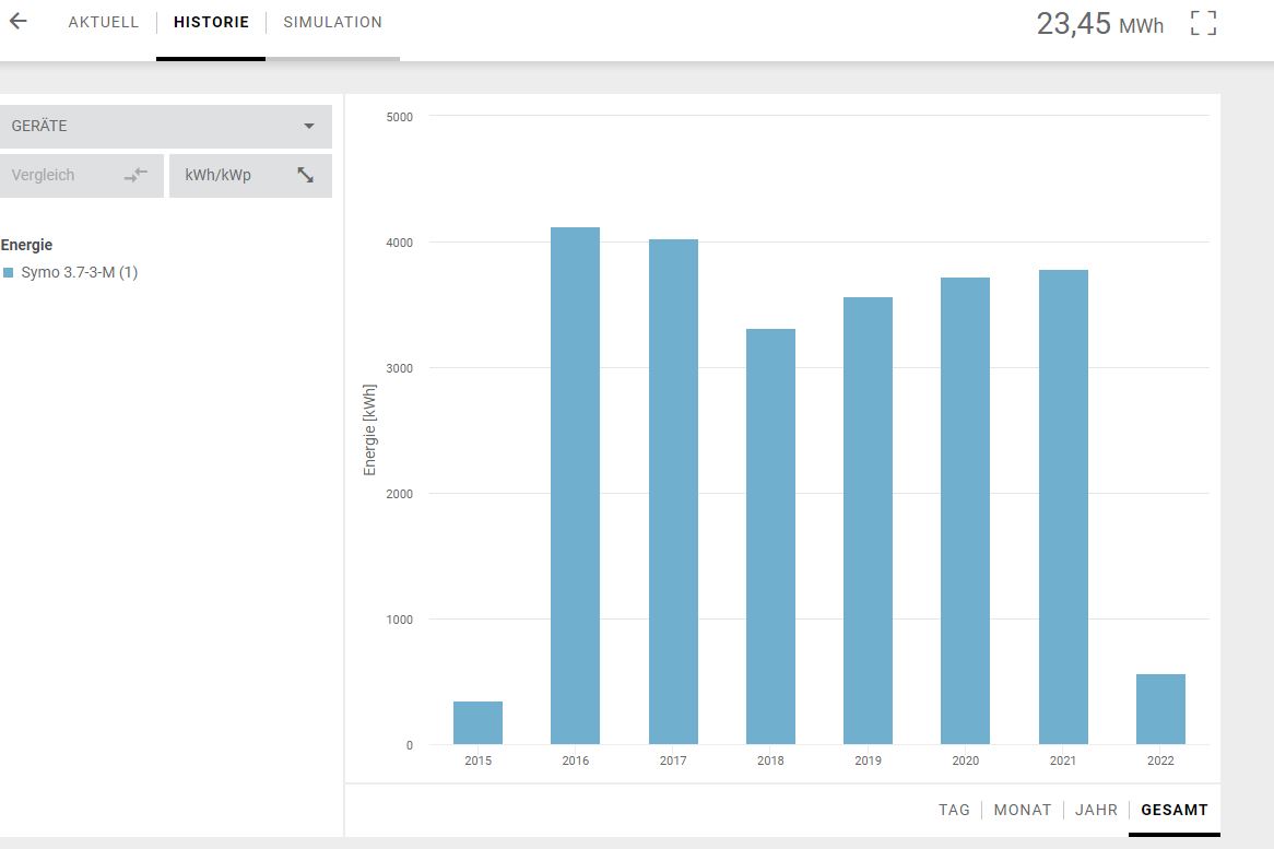 16 Stk. PV Module aufgeteilt auf OST / WEST Wechselrichter Fronius/Symo 3.7-3