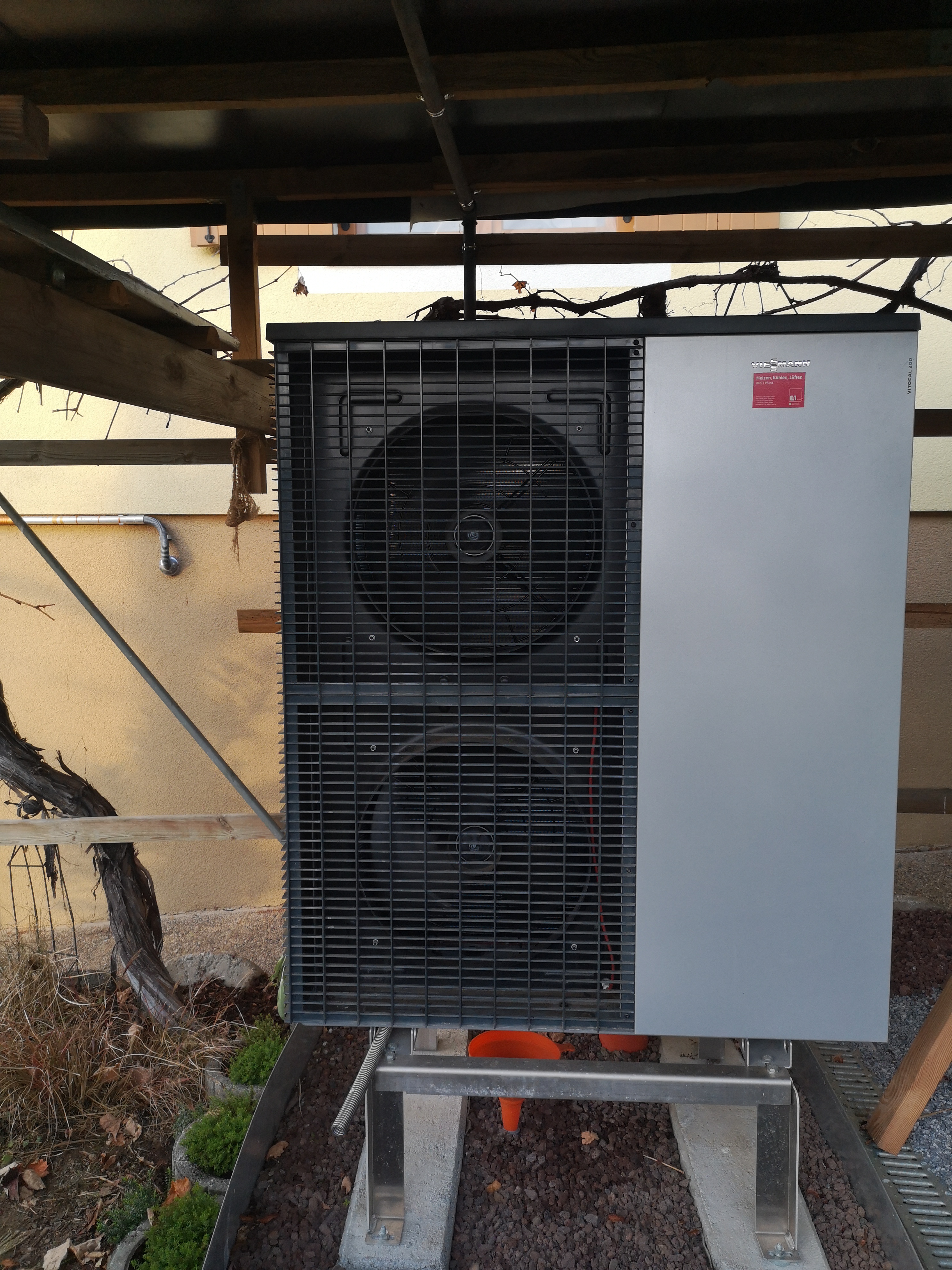 Die Ölheizung wird durch eine LW-Pumpe Viesmann Vitocal 200-S AWB-E 201.D13 mit Solar - Speicher 500 L ersetzt mit Einbindung der bestehenden Solar und Photovoltaik-Anlage.